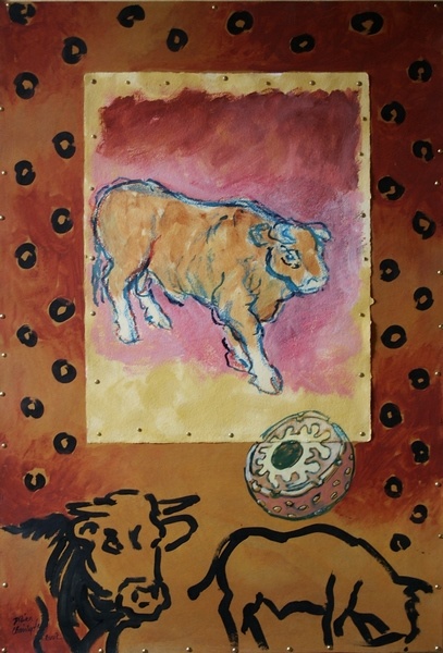 taureau Galopeur, pastel, acrylique et terre sur carton, 2002.