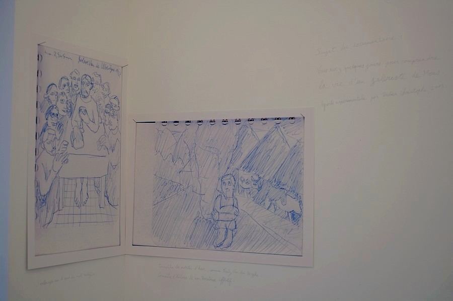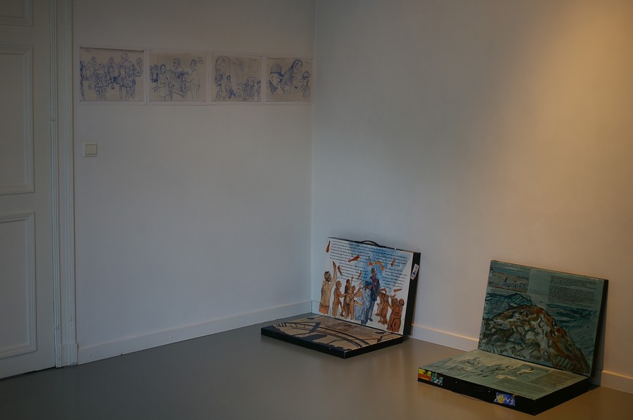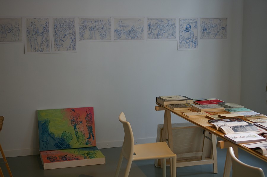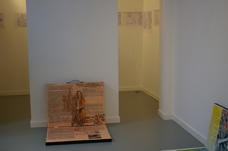 Vues de l'exposition à la galerie Koma en août 2013, à Mons, avant la réalisation des dessins.