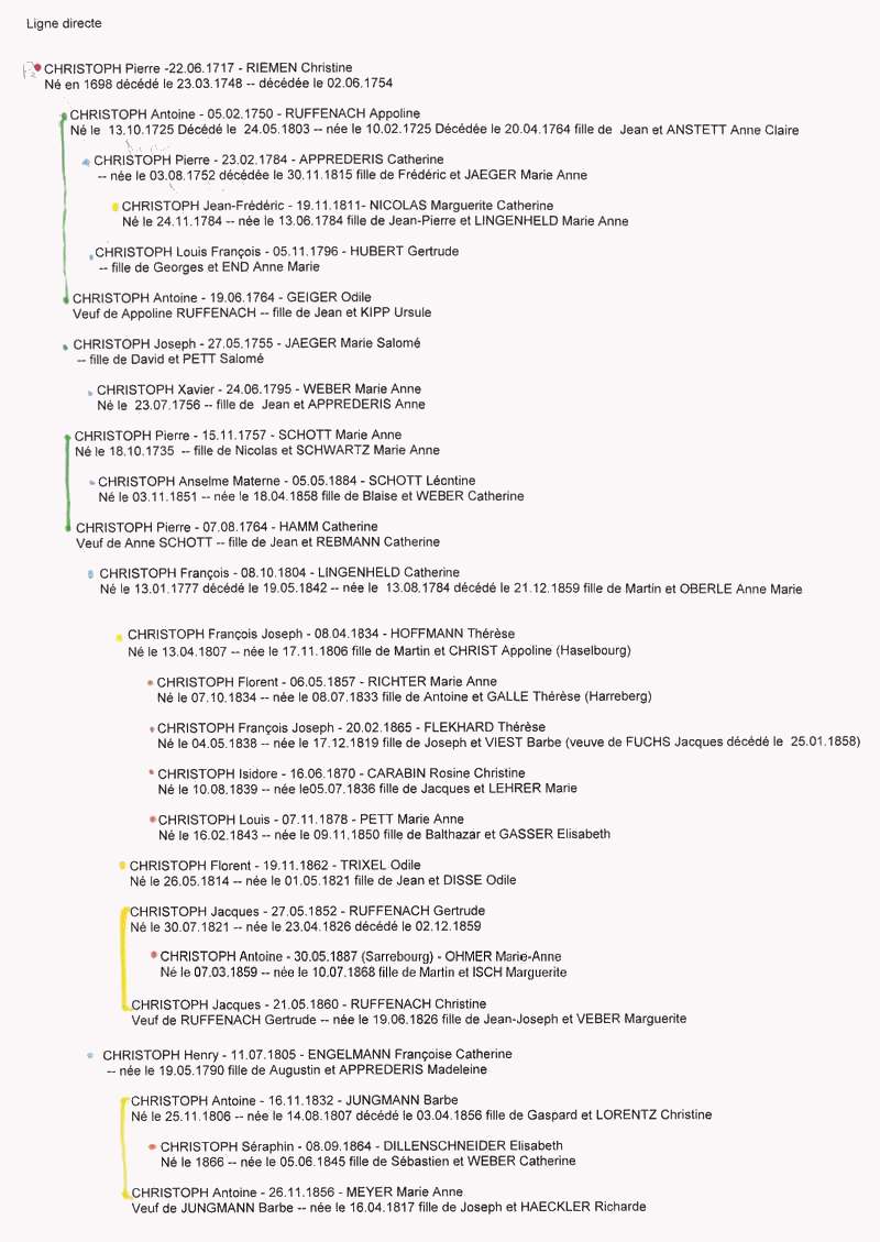 Généalogie ascendante de Hélène HINZELIN, épouse CHRISTOPHE, côté RISTROPH et PICARD